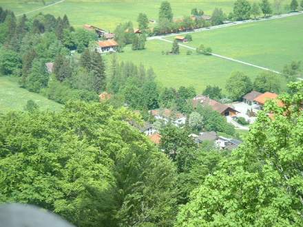 Looking from a window in Castle Neuschwanstein towards Pension Weiher.